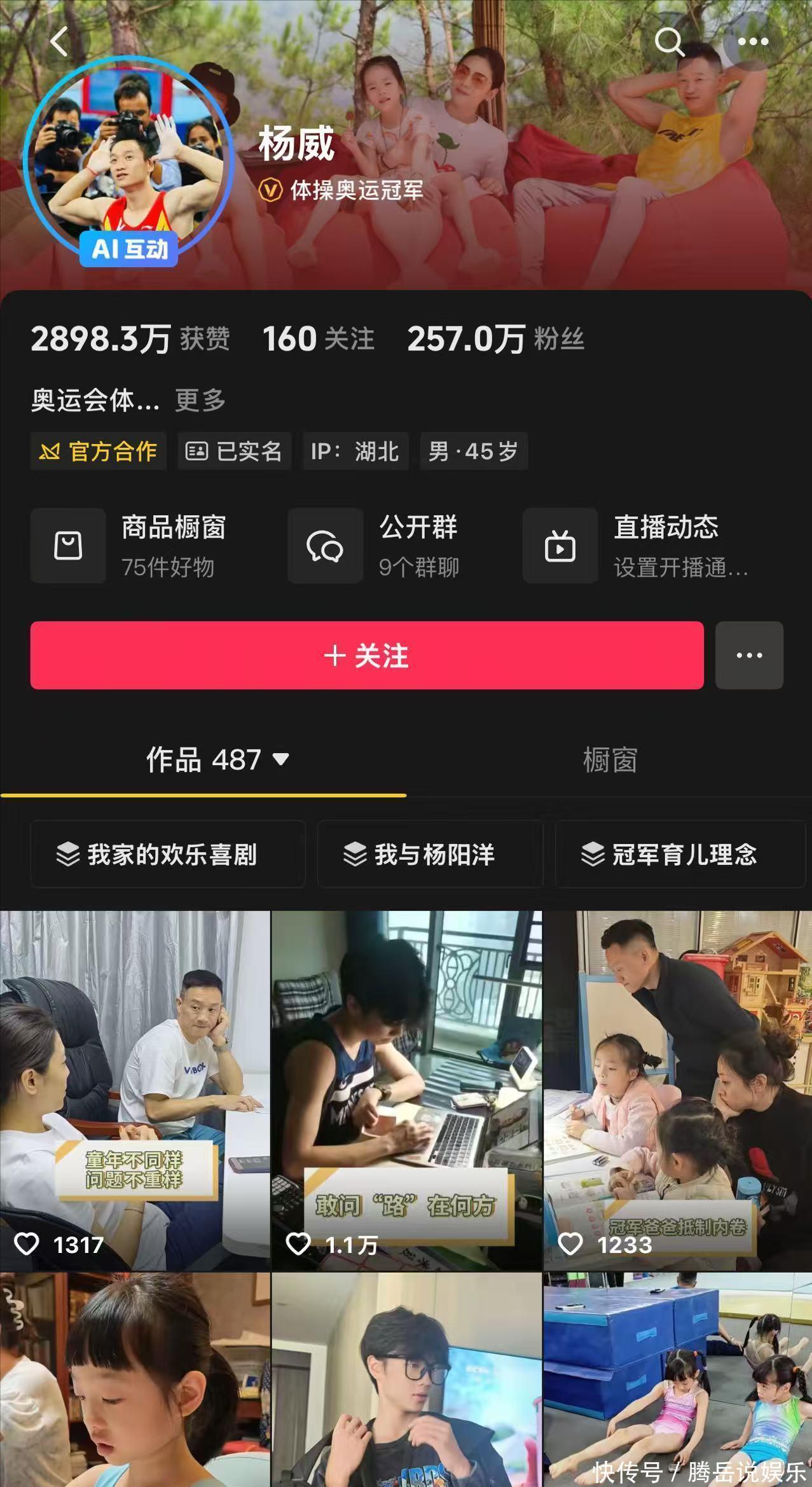 他想要孩子能够继承自己的体操衣钵,结果大儿子对体操毫无兴趣,两个女儿却是个脆皮体质,从出生到现在那是小病不断,可以说是桃李满天下,自家结苦瓜。大女儿练体操摔坏了腿,磕掉了牙,小女儿支气管炎+肺炎,不过后来他也发视频表示,不能要求孩子变成第二个杨威,而是应该变成第一个自己。